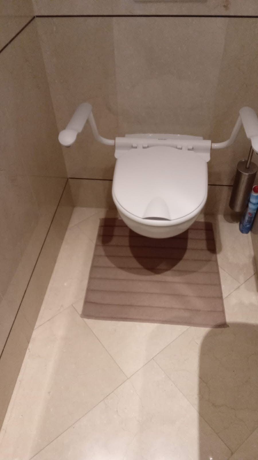 Voor deze klant voerden we gerichte aanpassingen in de badkamer uit om het dagelijks leven veiliger en comfortabeler te maken. We installeerden een stevig steunhandvat dat extra stabiliteit biedt bij het opstaan en verplaatsen. Daarnaast plaatsten we een verhoogde toiletbril met geïntegreerd hulpmiddel, waardoor zitten en rechtkomen merkbaar gemakkelijker wordt.